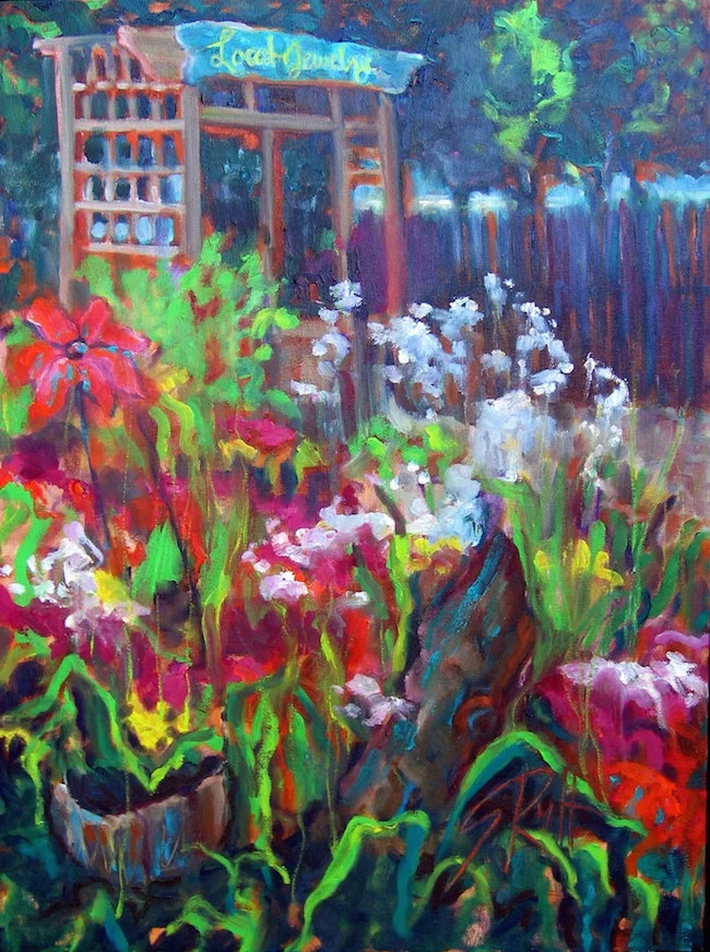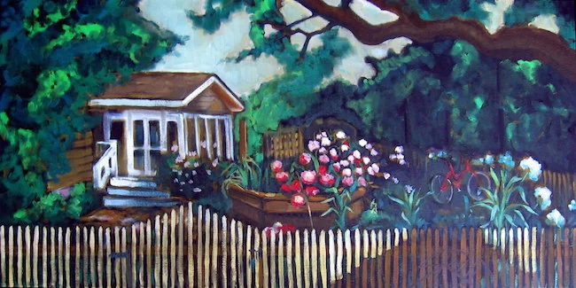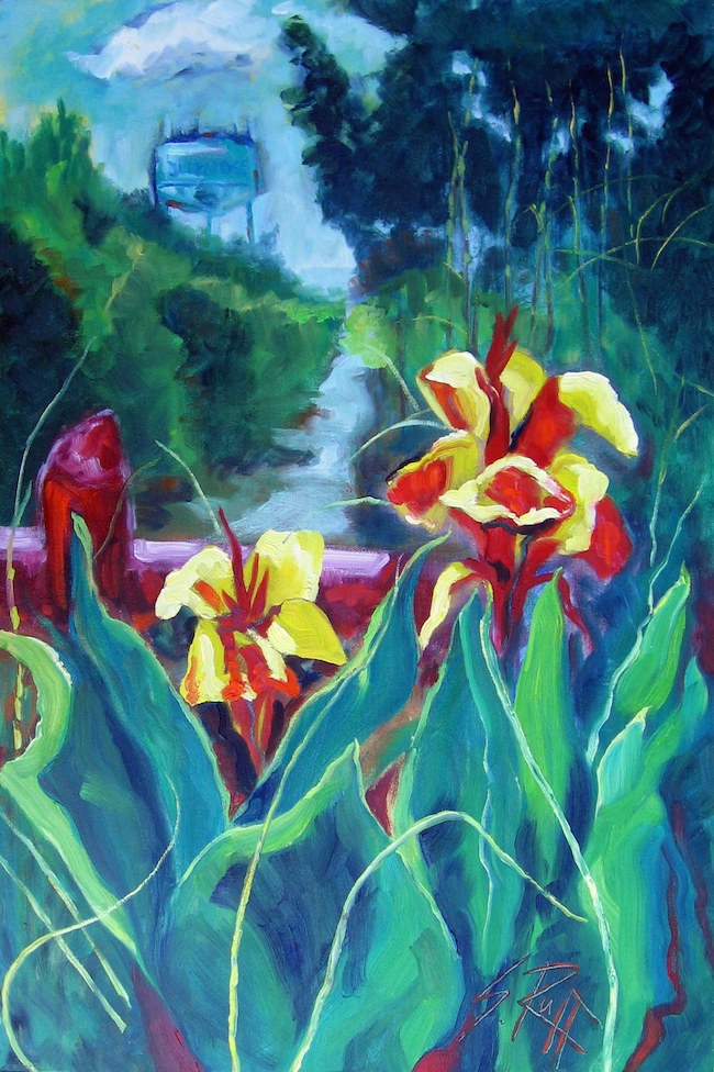 "Cannas & Water Tower" 18x27" SOLD