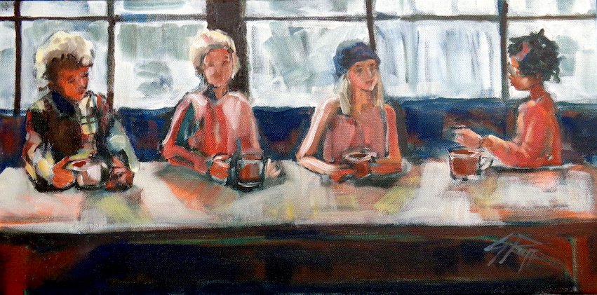 "The First Cup" 10x20", oil on canvas, sold