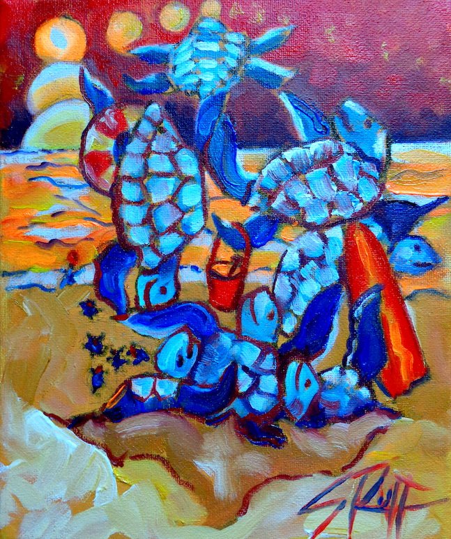 "Circus Turtles" 9 x 12" oil on canvas donation