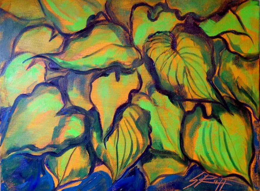 "Hostas" 12 x 16" oil on canvas for sale