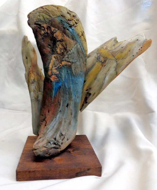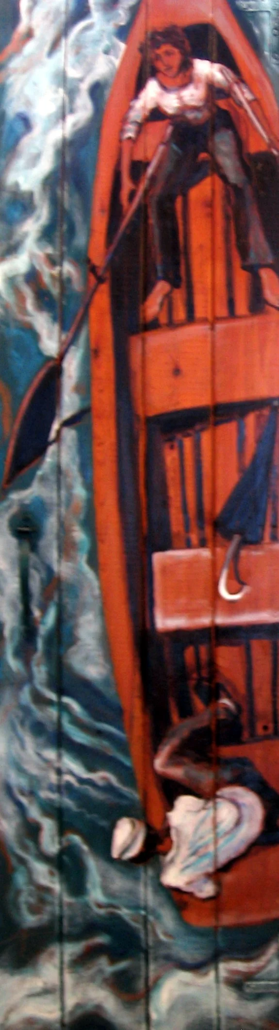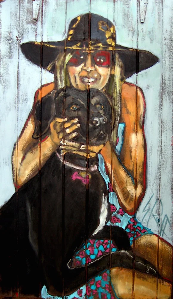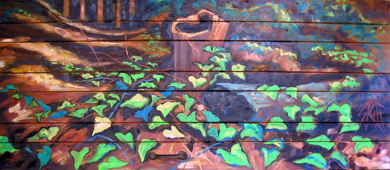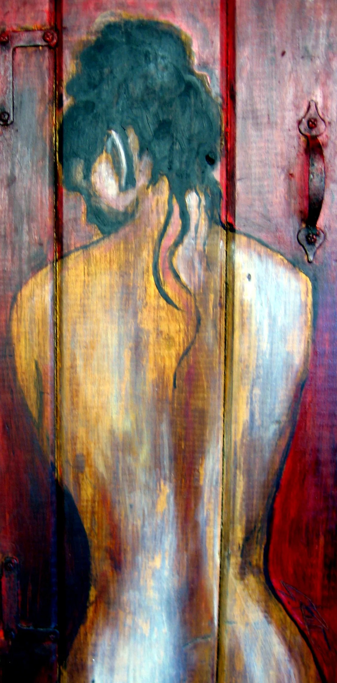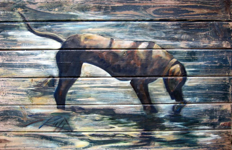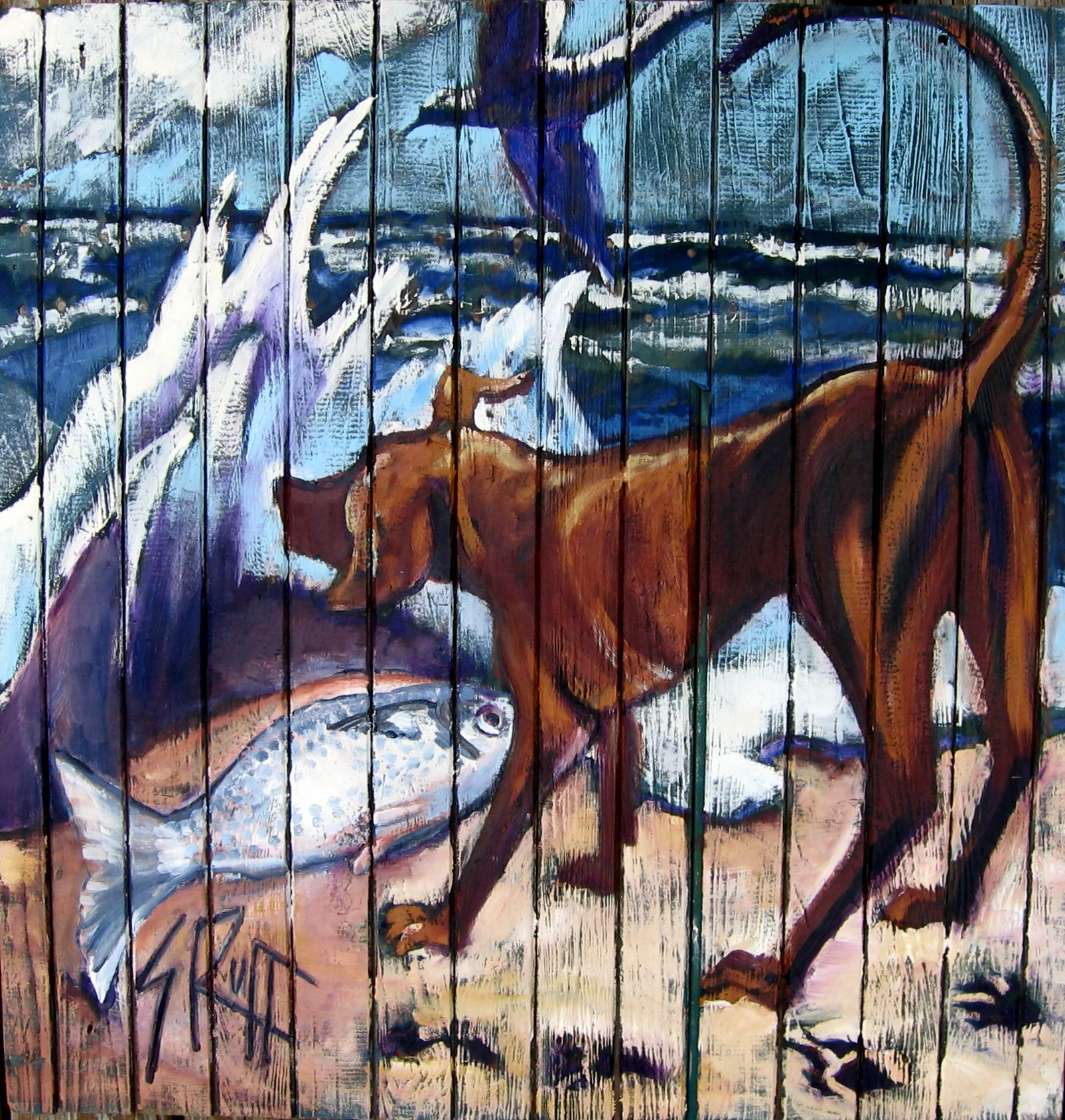 "Fish In" 32x30" Oil On Beach Wooden Shutter