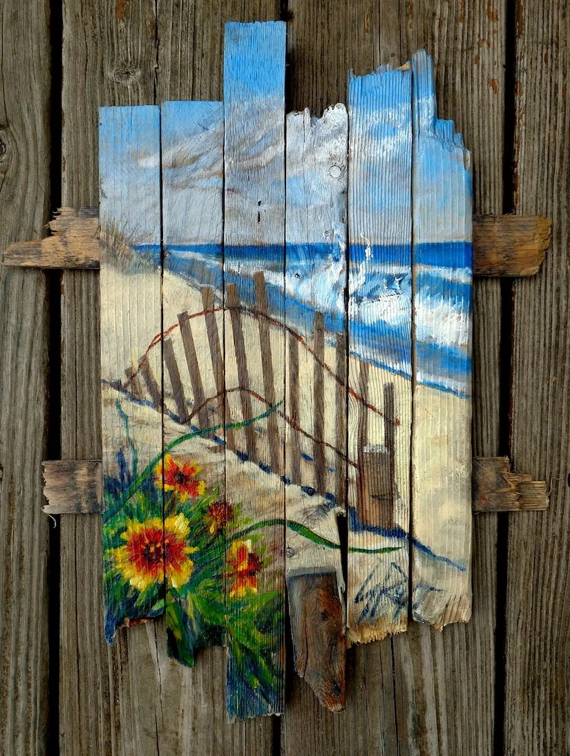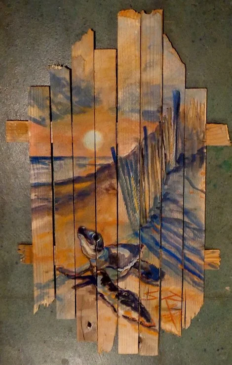 "Saving the Beach" 12 x 16" oil on sand fence KDH Gallery